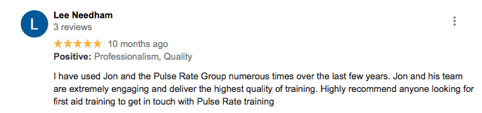 The course is usually delivered over 3 days (18 hours training) 9am-5pm daily. The course requires six practical assessments and 2 written theory assessments (multiple choice) to achieve the required standard. The course is complete with a first aid manual per student. At the end of the course students will gain a Level 3 Qualification with Certificate and ID Card (ID Cards are not issued during COVID-19 Pandemic). The qualification lasts for 3 years from date of completion and is Ofqual Regulated. It is advised delegates undergo a half day annual refresher course to ensure they stay up to date. The first year annual refresher is 50% off for all Pulse Rate Training Ltd delegates.